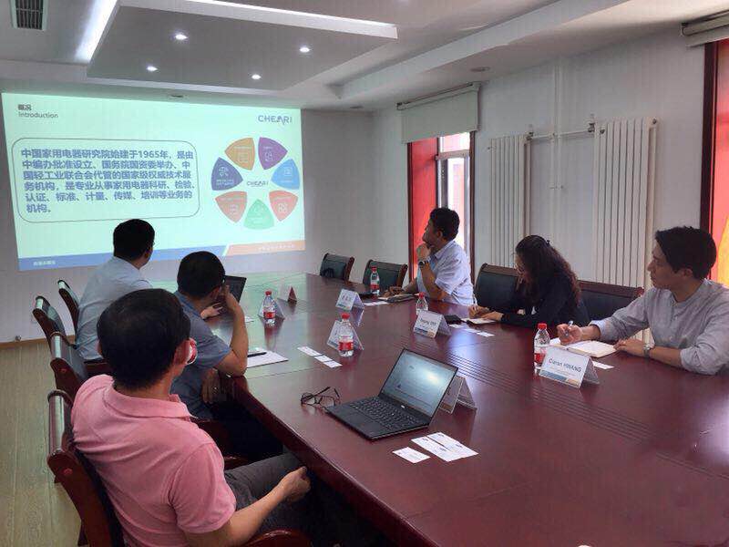 首先石文鵬部長表達了對Hyejung CHO副總裁一行到訪的熱烈歡迎,并表示目前中國十分重視智能技術的發展,對于家電行業,智能早已成為家電產品的主要發展方向之一。而我院作為家電行業公共技術服務平臺,應努力在關鍵共性技術、服務企業等方面取得更大的突破。其次,汪超副部長就我院的基本概況、智能家電標準、驗證以及產業化方面的進展和國家在智能家居領域的政策和支持做了詳細的介紹。最后,針對Hyejung CHO副總裁關心的我國智能家電標準及要求,張亞晨副所長給出了詳盡的介紹和獨到的見解。