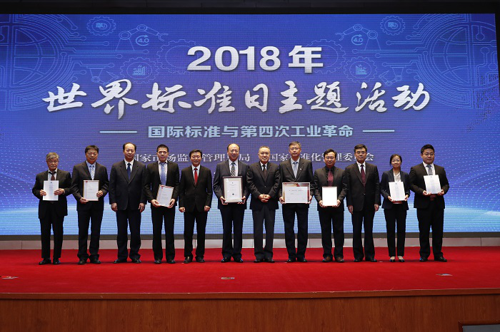 10月14日,在北京舉行的2018年世界標準日主題活動上,國家市場監管總局局長張茅,國家市場監管總局副局長、國家標準委主任田世宏向我國獲得IEC“愛迪生獎”和“1906獎”、ISO“勞倫斯獎”和“卓越貢獻獎”以及“中國標準創新貢獻獎”的獲獎代表頒獎。
