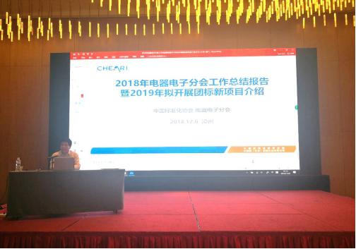 最后,中國標準化協會電器電子分會祁冰秘書長對2018年電器電子分會的工作進行總結匯報,并針對2019年擬開展團標新項目進行重點介紹。