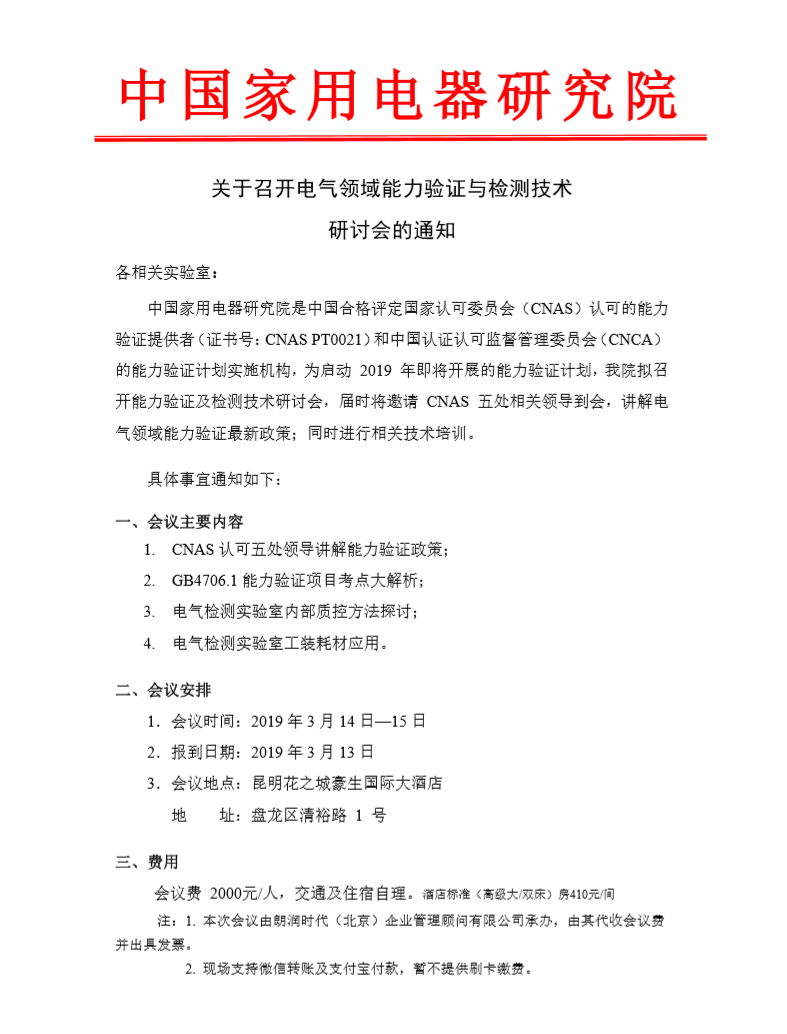 關于召開電氣領域能力驗證與檢測技術研討會的通知