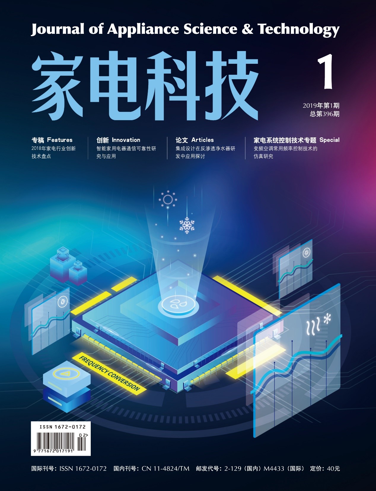 2019年伊始,《家電科技》期刊正式變更為雙月刊,變刊后,我們將會對期刊的學術性和專業性作進一步的提升,期刊新設置了前沿和創新兩個欄目,更加關注國際國內前沿技術和創新項目。新鮮出爐的2019年第一期《家電科技》論文欄目以家電系統控制技術為專題,集中展示了家電企業在系統控制技術方面的技術成果。以下是本期期刊的主要內容簡介:
