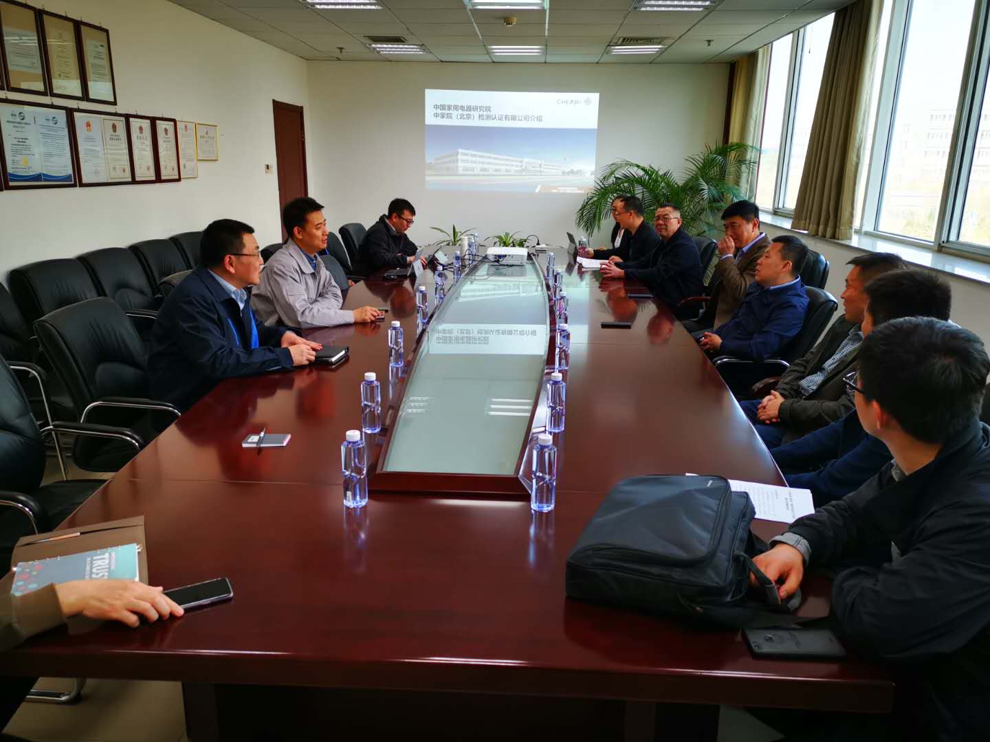2019年4月3日,新疆維吾爾自治區市場監督管理局黨組成員、副局長王軍帶隊,與新疆維吾爾自治區電氣化辦、住建廳代表等來到我院亦莊辦公區開展調研工作。中國家用電器研究院副院長、中家院(北京)檢測認證有限公司總經理曲宗峰全程陪同了此次調研,雙方就生活電器尤其是電采暖爐等煤改電涉及產品質量狀況進行了座談。