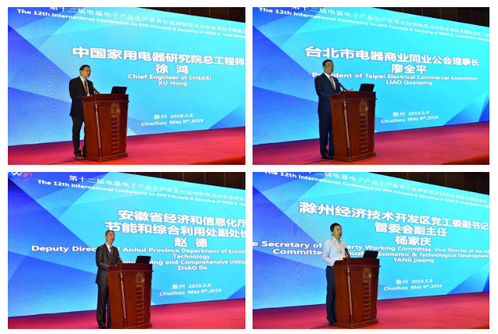 出席本次會議的領導有國家工信部節能與綜合利用司張玉燕博士、生態環境部固體廢物與化學品管理中心鄧毅、安徽省經濟和信息化廳節能和綜合利用處副處長趙德、滁州經濟技術開發區黨工委副書記、管委會副主任楊家慶、滁州市經濟和信息化局副局長趙祖安、中國家用電器協會高級顧問劉福中等領導蒞臨本屆會議。