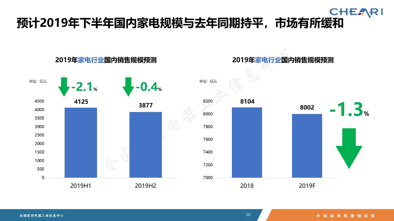 7月30日,“2019年中國家電行業(yè)半年度報告發(fā)布會”在北京召開,中國家用電器研究院和全國家用電器工業(yè)信息中心在會上聯(lián)合發(fā)布了《2019年中國家電行業(yè)半年度報告》(以下簡稱“半年度報告”)。半年度報告通過對家電行業(yè)上半年的運行情況進行細致的梳理,對下半年的家電行業(yè)發(fā)展狀況做出預(yù)判,幫助相關(guān)部門、企業(yè)厘清行業(yè)發(fā)展脈絡(luò),為政策的制定、業(yè)務(wù)的規(guī)劃提供依據(jù),具有承上啟下的積極作用。