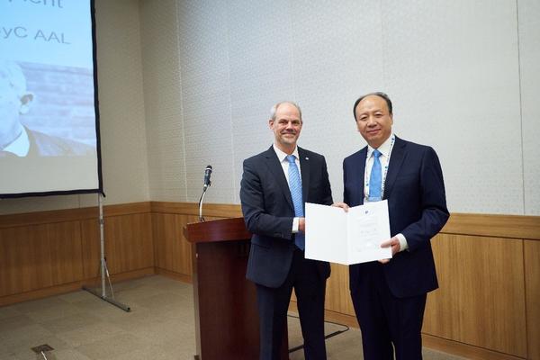 2018年10月22日至26日,第82屆國際電工委員會(IEC)大會在韓國釜山舉行。在1國際電工委員會標準管理局(IEC/SMB)第163屆會議上,IEC副主席、SMB主席Ralph Sporer 先生向中國家用電器研究院馬德軍副院長頒發了2018年度IEC托馬斯·愛迪生大獎。